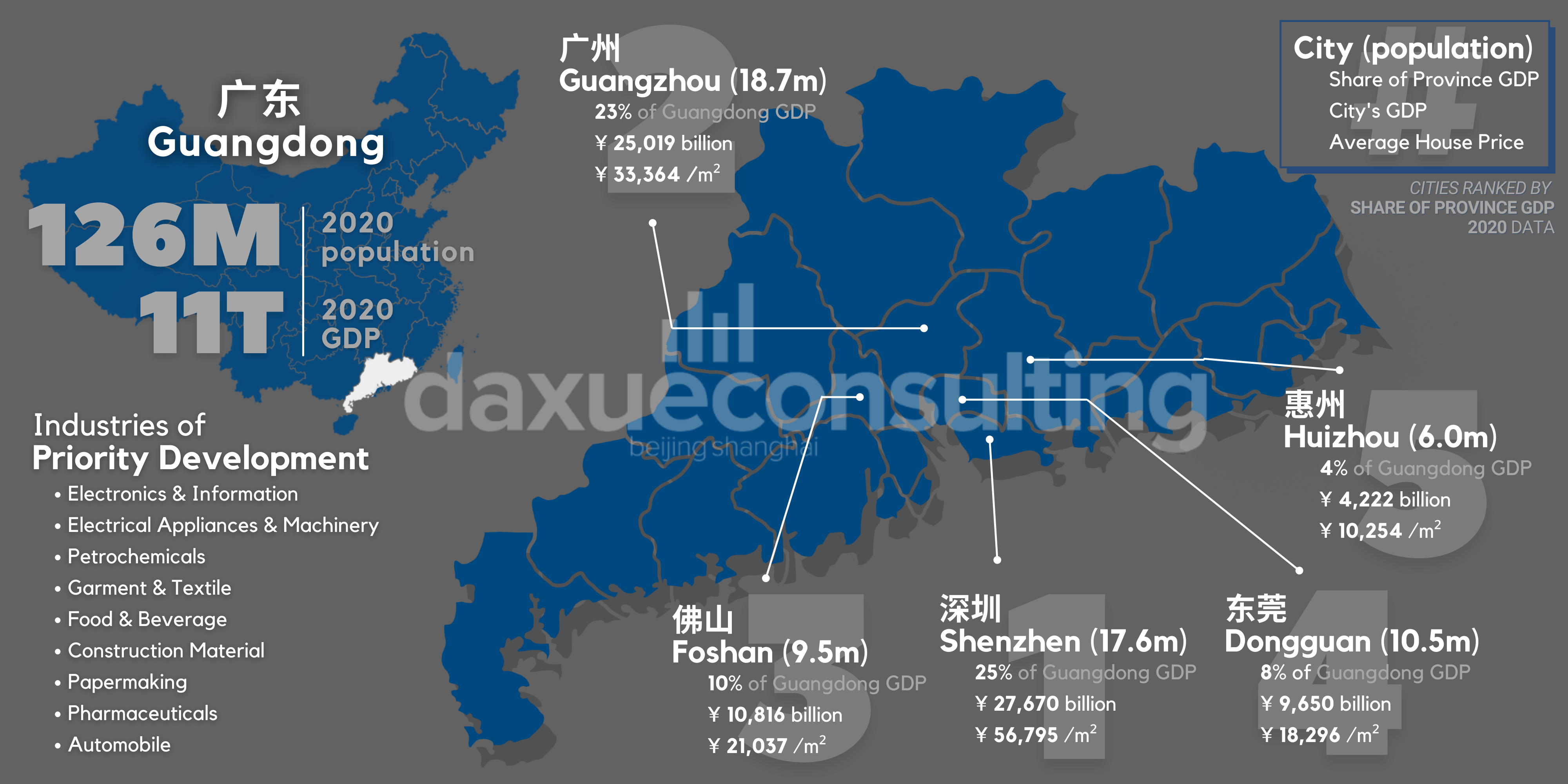 - The world’s 4th largest sub-national economy with a GDP of 10.77 trillion RMB (2019)