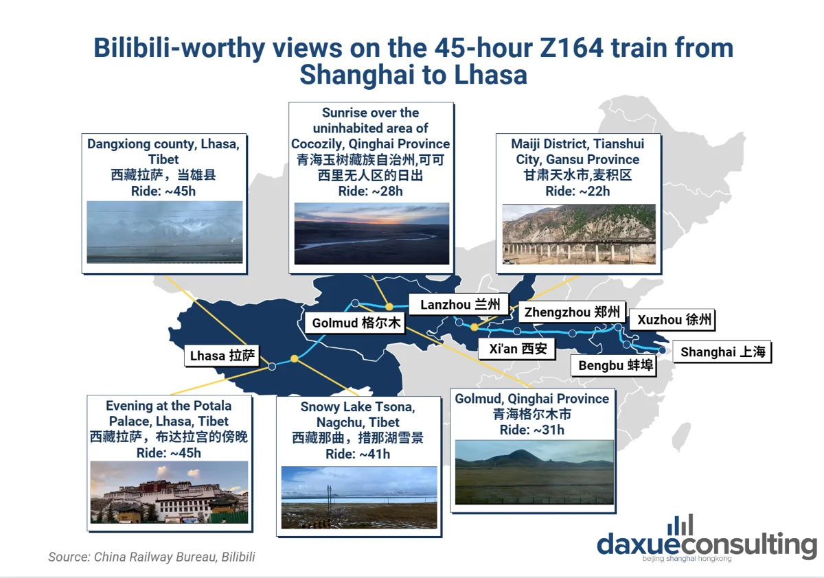 The Z164, a nearly 47-hour direct express train from Shanghai to Lhasa, offers a captivating journey through the provinces of Jiangsu, Anhui, Henan, Shaanxi, Gansu, Qinghai, and Tibet. Its scenic ride showcases China’s diverse landscapes, from the picturesque Yangtze River to cultural relics in central China, Huashan Mountain, Terracotta Warriors in Shaanxi, and the awe-inspiring Qinghai-Tibet Plateau.